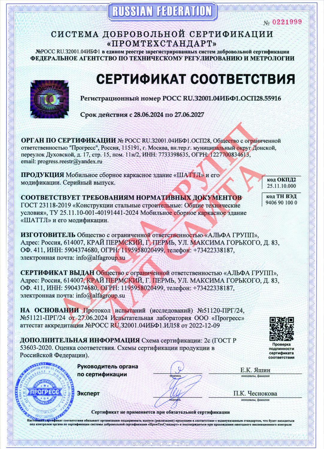 Сертификат соответствия ТУ 25.11.10-001-40191441-2024